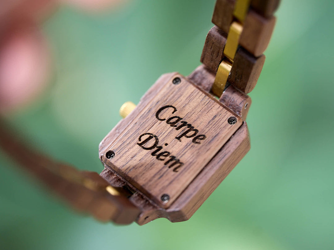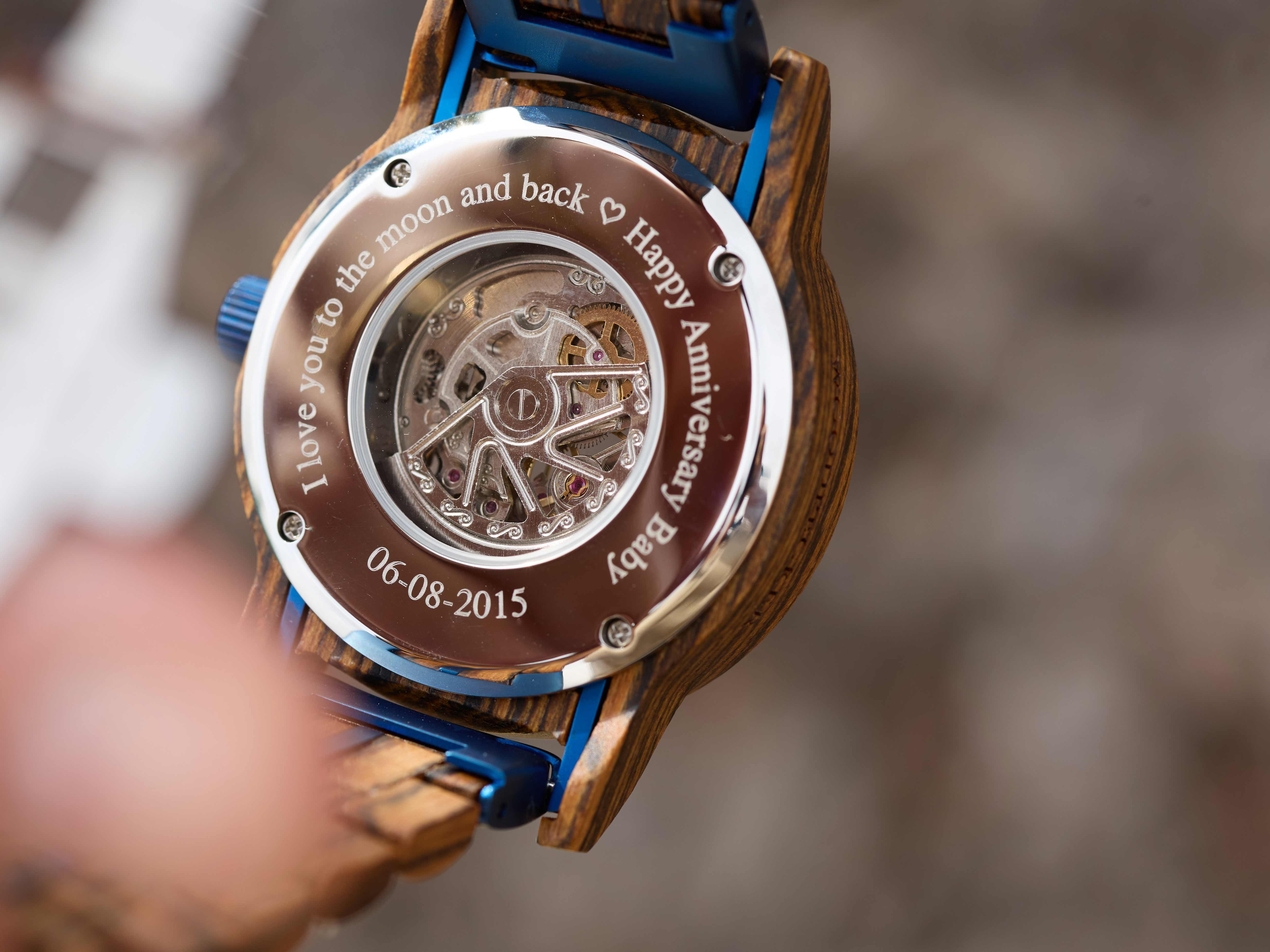 Markeer je mijlpalen, draag je motto, of geef een bijzonder cadeau - onze houten horloges worden extra persoonlijk door een unieke gravering.